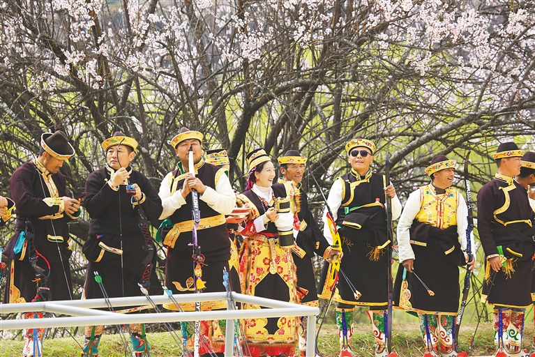圖為2025年林芝桃花旅游文化節(jié)巴宜區(qū)分會(huì)場工布響箭展演活動(dòng)現(xiàn)場。記者 謝筱純 攝