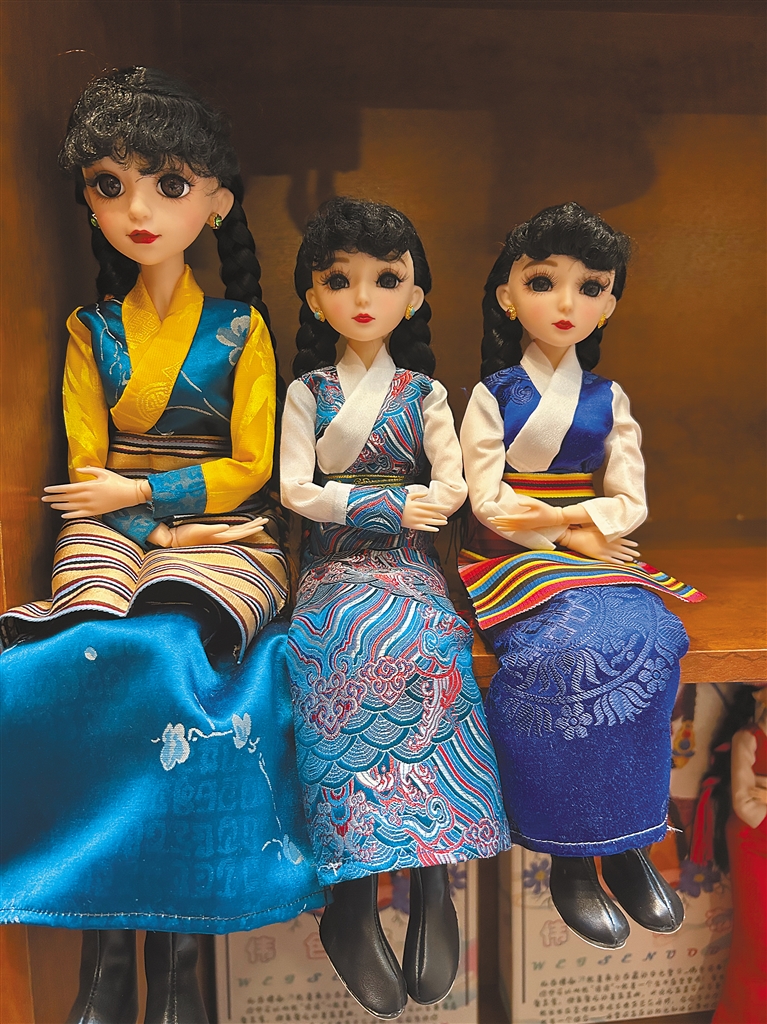當(dāng)行至二樓文創(chuàng)區(qū),一隅活力景象,驟然點(diǎn)亮歷史的深沉,一排排“拉颯姑娘”布娃娃,身著華麗藏裝靜靜佇立,吸引游客駐足流連。