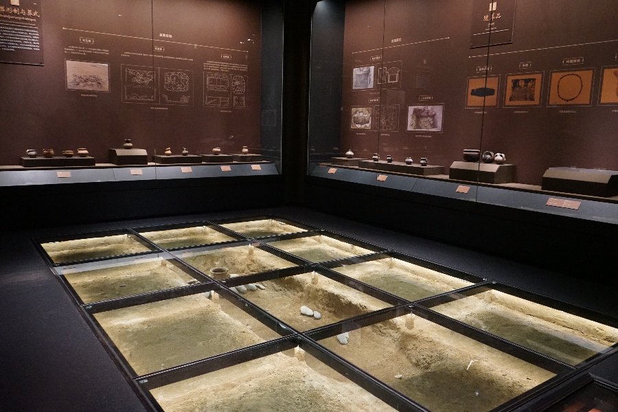 曲踏墓地目前共發(fā)現(xiàn)洞式墓葬8座,復(fù)原展示的即3號(hào)墓葬,坑深4.7米,坑口長2.3米,寬0.7米。在墓坑?xùn)|端填土表面發(fā)現(xiàn)石頭堆砌的簡(jiǎn)易祭臺(tái),內(nèi)放一個(gè)帶流陶罐,陶罐周邊散落一些羊骨,為一處祭祀墓主人的遺跡?!翱吹竭@樣的復(fù)原展示,讓我對(duì)考古發(fā)掘和歷史文化有了更直觀、科學(xué)的認(rèn)識(shí)?!币晃徽趨⒂^的觀眾表示。