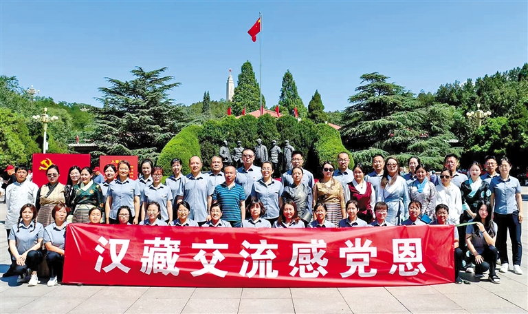 札達(dá)縣教師交流團與石家莊市61中黨支部在西柏坡舉行黨日活動。河北省第十批援藏工作隊供圖