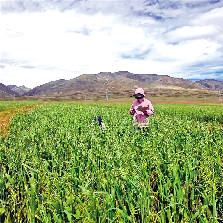 在陜西省援助擴建的阿里地區(qū)飼草技術(shù)推廣中心試驗基地,技術(shù)人員正在工作。陜西省第十批援藏工作隊供圖