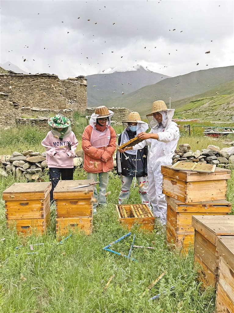 “蜂”產(chǎn)業(yè)激活鄉(xiāng)村振興“甜蜜動(dòng)能”。走進(jìn)卡珠村的德康瓦蜜蜂養(yǎng)殖專業(yè)合作社養(yǎng)殖基地,一排排蜂箱整齊擺放,成群的蜜蜂穿梭在花叢間,振翅的嗡嗡聲交織成一曲熱鬧的豐收曲。負(fù)責(zé)人尼瑪桑旦,一位返鄉(xiāng)創(chuàng)業(yè)的95后大學(xué)生,正帶領(lǐng)員工們忙碌著:“我們創(chuàng)立了‘阿媽準(zhǔn)’藏蜜品牌,也在銷售風(fēng)干牛肉、人參果、蕁麻草等特色產(chǎn)品,通過(guò)電商平臺(tái),我們的‘哲古味’已經(jīng)賣到了全國(guó)。去年銷售額突破了115萬(wàn)元,還帶動(dòng)了周邊10多戶群眾增收致富?!边@間小小的加工坊,正是哲古鎮(zhèn)推動(dòng)傳統(tǒng)產(chǎn)業(yè)與現(xiàn)代市場(chǎng)接軌的生動(dòng)縮影。