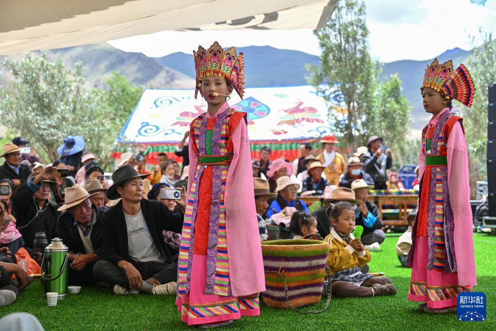 7月16日,民間藏戲表演隊(duì)在南木林縣非遺公園內(nèi)表演湘巴藏戲。新華社記者 李鑫 攝