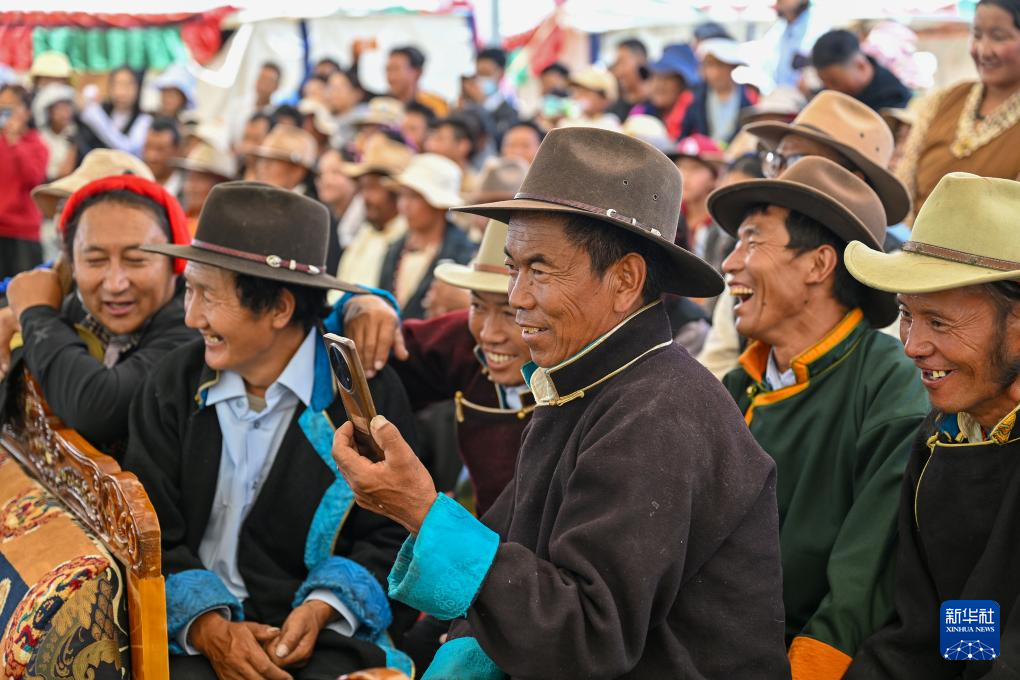 7月16日,群眾在南木林縣非遺公園內(nèi)觀看藏戲表演。新華社記者 李鑫 攝