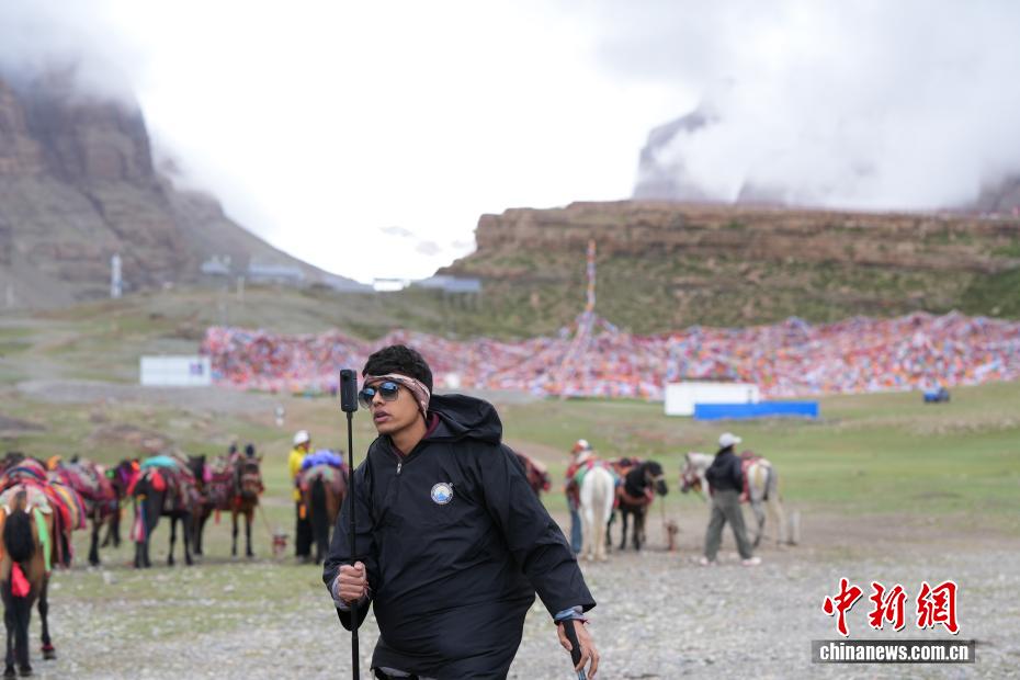 7月21日,一位來自印度的徒步旅行者在岡仁波齊山腳拍攝徒步視頻。岡仁波齊位于西藏阿里地區(qū)普蘭縣境內(nèi),是岡底斯山的主峰,也是藏傳佛教的神山之一,每年吸引眾多信徒前往轉(zhuǎn)山,并衍生出徒步旅行的經(jīng)典路線。每年來自國內(nèi)外的徒步旅行者為當(dāng)?shù)貏?chuàng)造就業(yè)機(jī)會的同時,也推動了文旅產(chǎn)業(yè)的發(fā)展。中新社記者 張祥毅 攝
