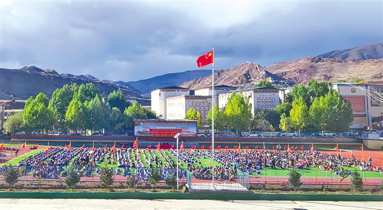 七十余載櫛風沐雨,丁青縣小學早已舊貌換新顏。昔日的鐵皮房、泥土地,已被占地近3萬平方米、建筑面積超1.2萬平方米的現(xiàn)代化校園取代。寬敞明亮的教學樓、標準化的運動場、齊全的各類功能教室,促進了孩子們的全面發(fā)展。截至2024年9月,學校擁有學生2650余名,教學班級49個。一支136人的高素質教師隊伍扎根于此,教書育人。