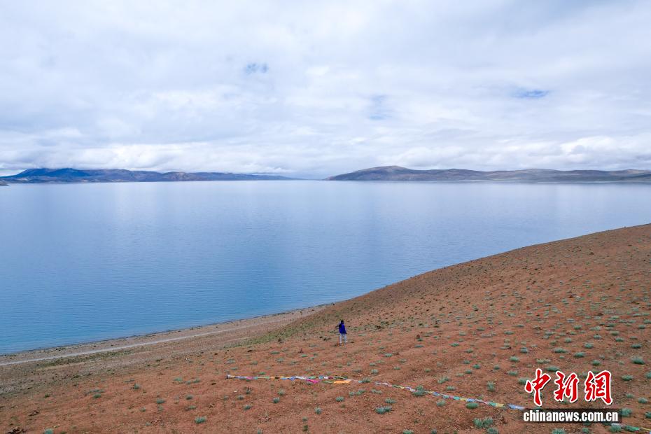 7月22日,游客游覽拉昂錯(cuò)?,斉杂哄e(cuò)與拉昂錯(cuò)位于西藏阿里地區(qū)普蘭縣境內(nèi),兩湖僅有一堤之隔,卻擁有不同的地理特征和咸淡水之分,因而分別被譽(yù)為“圣湖”與“鬼湖”。每年夏天,兩湖與附近的岡仁波齊一道,吸引眾多游客前來賞景游覽。(無人機(jī)照片)中新社記者 張祥毅 攝