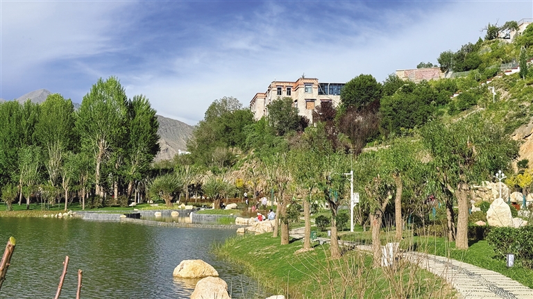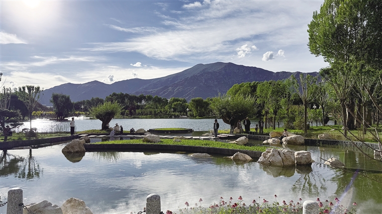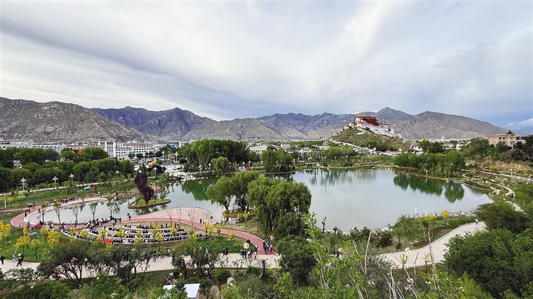 拉薩團(tuán)結(jié)公園坐落于布達(dá)拉宮西麓、藥王山腳下。昔日,這里房屋高低錯(cuò)雜、線纜交錯(cuò)密布、市場(chǎng)喧鬧擁擠、環(huán)境喧囂擾攘,不僅影響城市形象和生態(tài)環(huán)境,還影響出行游玩體驗(yàn)。如今,湖水如碧綢般清澈,岸邊綠樹(shù)成蔭,各類花卉競(jìng)相綻放,昔日雜亂之地已蛻變?yōu)轸浯涿髦椋宋墓袍E與自然景致相映成趣,共同繪就出“百澤繞城·水城相依”的生態(tài)文明畫卷。