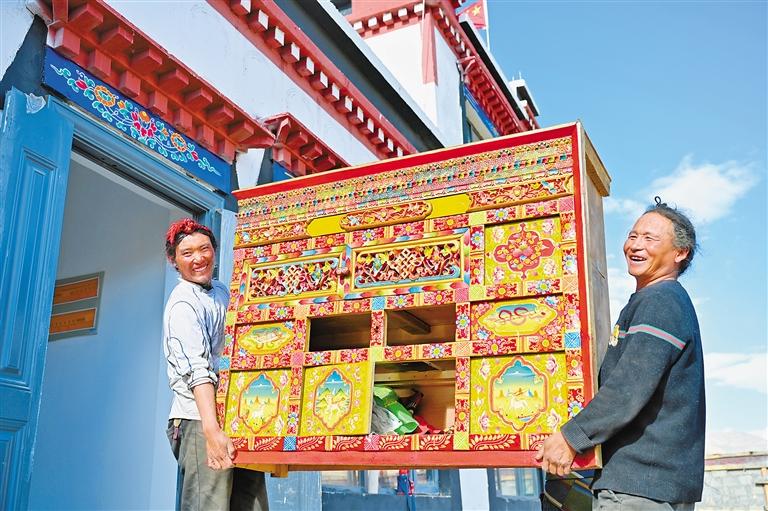定結縣野江村村民往新居里搬家具。記者 平措次仁 攝