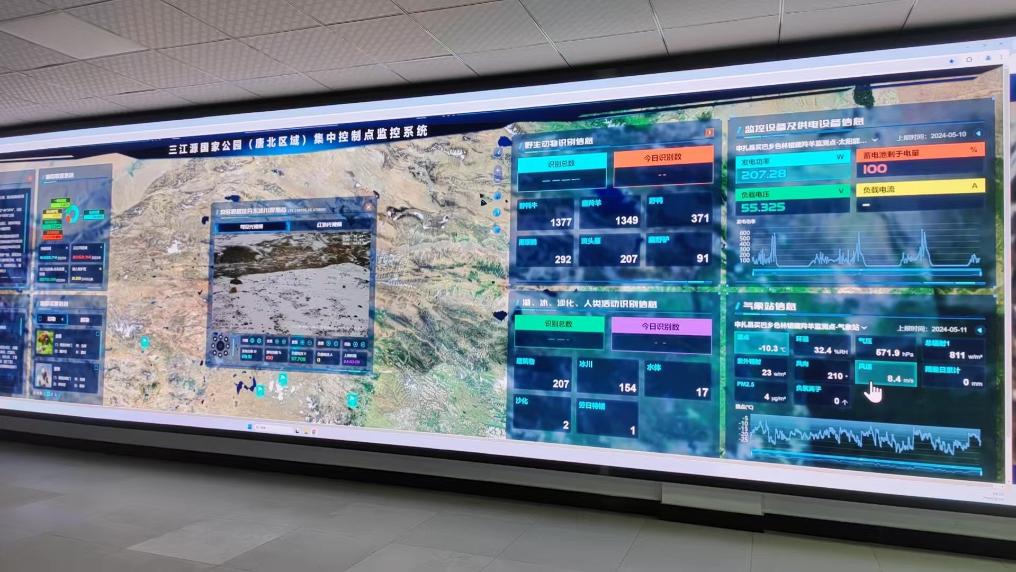 在西藏那曲市三江源國(guó)家公園(唐北區(qū)域)監(jiān)測(cè)中心,巨大的電子屏幕上交替呈現(xiàn)著無人區(qū)不同角落的生動(dòng)畫面:藏羚羊群在冰川腳下悠閑覓食;藏野驢在草原上緩步前行;雪豹的身影在某處巖壁間一閃而過。每一幅畫面都配有精準(zhǔn)的物種識(shí)別數(shù)據(jù)和地理坐標(biāo),將生態(tài)狀況轉(zhuǎn)化為清晰可讀的數(shù)字信息。