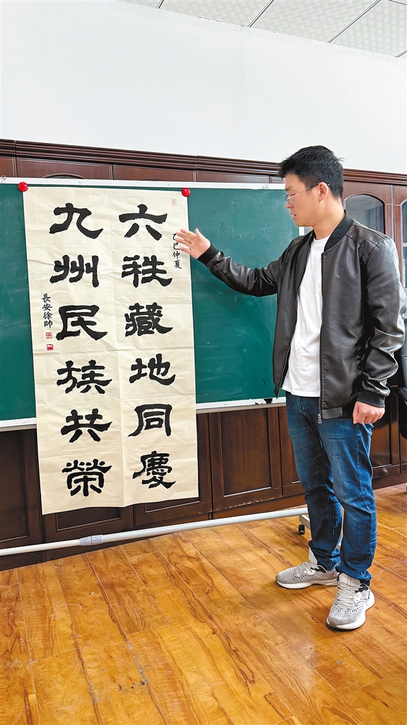 作為西藏自治區(qū)青年聯(lián)合會(huì)委員、西藏自治區(qū)青年書(shū)法家協(xié)會(huì)理事,徐帥的作品多次獲獎(jiǎng),但他更珍視的是傳承的意義。他在校園開(kāi)設(shè)書(shū)法篆刻工作室,教藏族同學(xué)刻自己的名字印章,也向當(dāng)?shù)厮嚾苏?qǐng)教藏文篆刻技巧。如今,這位即將畢業(yè)的碩士研究生,最大的愿望是舉辦一場(chǎng)個(gè)人篆刻藝術(shù)展。