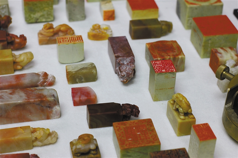 徐帥用于篆刻創(chuàng)作的各類(lèi)印石材料。