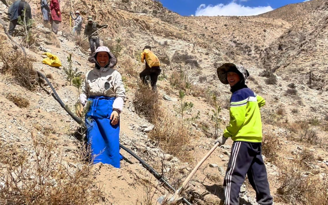 2024年,乃東區(qū)大力推廣“以工代賑”模式,積極引導(dǎo)周邊農(nóng)牧民群眾參與植樹造林,確保參與南北山綠化工程的山南籍務(wù)工人員比例不低于70%。