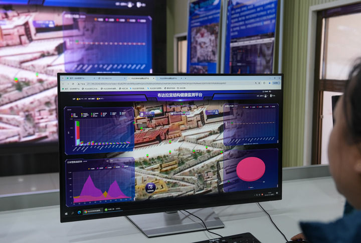 在布達拉宮監(jiān)測中心,工作人員正忙著通過數字化平臺,實時監(jiān)控布達拉宮的“一磚一瓦”。