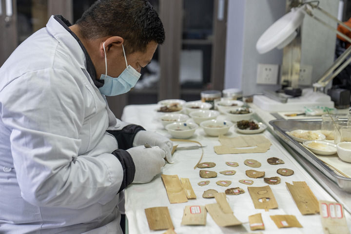 “貝葉經修復技術在全世界沒有統一的標準,也沒有具體的修復流程。我們是一步步探索和創(chuàng)新,才取得了重要突破?!辈歼_拉宮管理處文??乒ぷ魅藛T冷本凱介紹說。