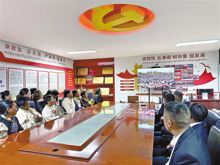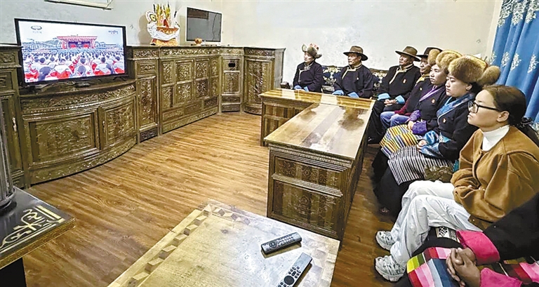 日喀則市謝通門縣仁欽則鄉(xiāng)倫珠孜村的村民們集中觀看了現(xiàn)場(chǎng)直播,現(xiàn)場(chǎng)不時(shí)傳出熱烈掌聲。老黨員仁增多吉感慨萬千:“我深切體會(huì)到了沒有中國(guó)共產(chǎn)黨就沒有社會(huì)主義新西藏,就沒有我們今天的幸福生活。我將始終維護(hù)祖國(guó)統(tǒng)一,加強(qiáng)民族團(tuán)結(jié),堅(jiān)定不移聽黨話、矢志不渝跟黨走。”