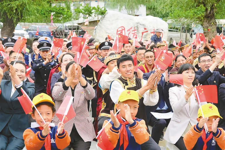 山南市隆子縣玉麥鄉(xiāng)干部群眾、派出所民警等來到愛國(guó)守邊先進(jìn)事跡展館,集中收聽收看了慶祝大會(huì)直播。玉麥村的大學(xué)生尼瑪次仁說:“當(dāng)看到山南彩車上‘家是玉麥,國(guó)是中國(guó)’的標(biāo)語時(shí),我感到非常驕傲與自豪。作為新時(shí)代青年,我要傳承好發(fā)揚(yáng)好愛國(guó)守邊精神,時(shí)刻準(zhǔn)備著到祖國(guó)和人民最需要的地方去?!?/p>