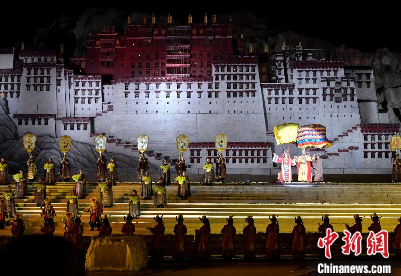 圖為大型史詩劇《文成公主》演出現(xiàn)場。中新社記者 李林 攝