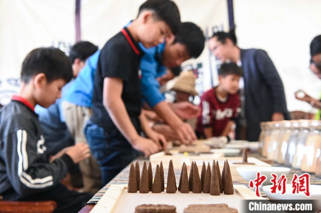 圖為2019年7月6日,來自江蘇蘇州的小游客們在德吉藏家體驗(yàn)藏香手作。中新社記者 何蓬磊 攝