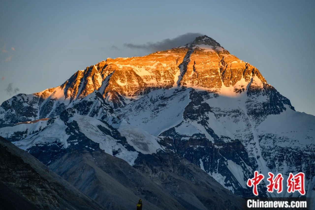 圖為珠峰日照金山美景。中新社記者 貢嘎來松 攝