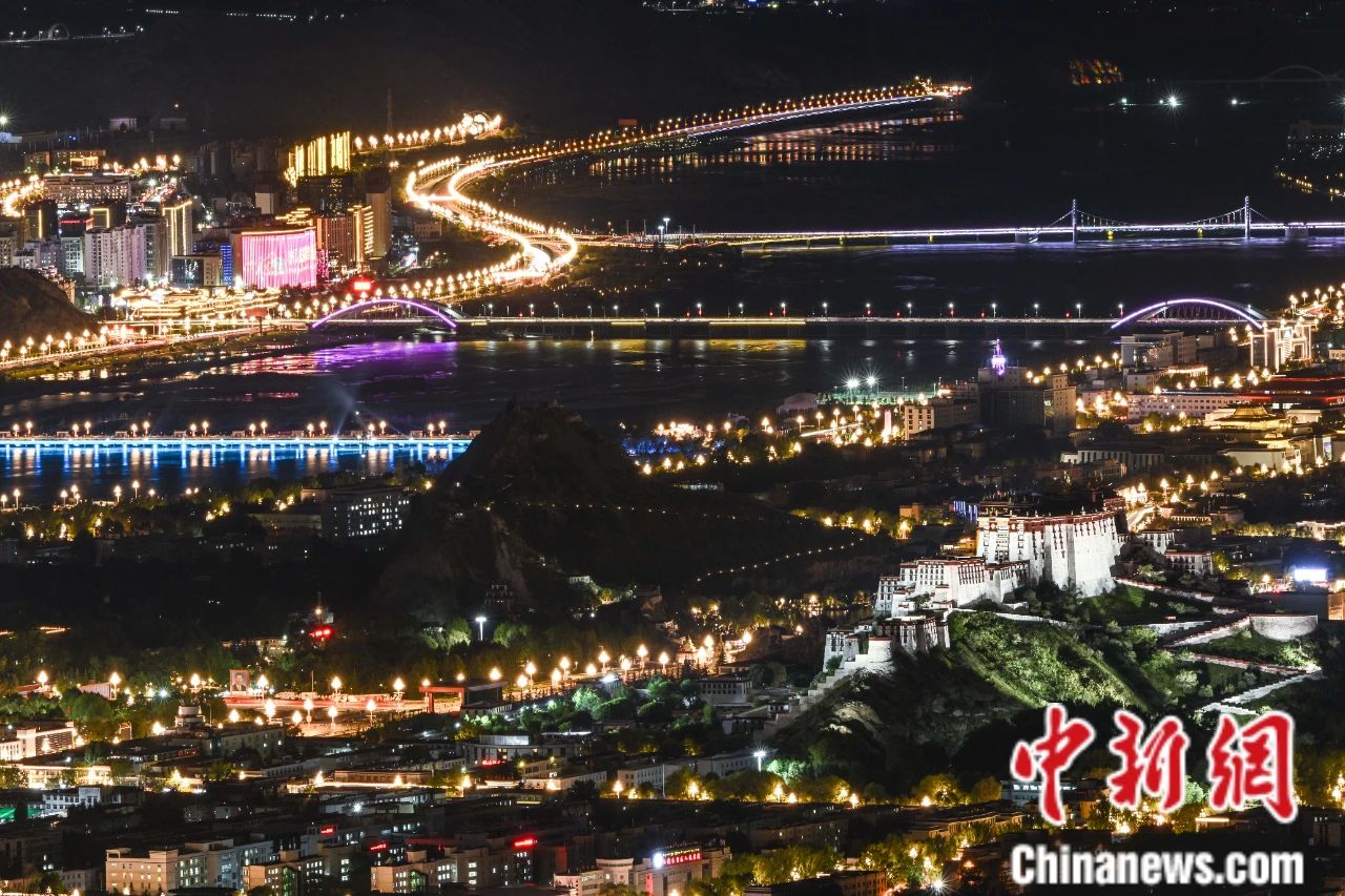 圖為拉薩璀璨夜景。中新社記者 貢嘎來松 攝