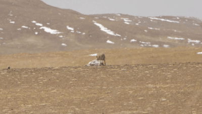 羌塘國家級自然保護區(qū)核心區(qū)中的野狼和已經(jīng)死去的母羊。