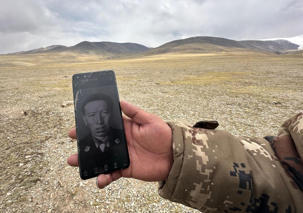 野保員格桑倫珠向記者展示他手機中珍藏的羅布玉杰的照片。新華社記者 費茂華 攝