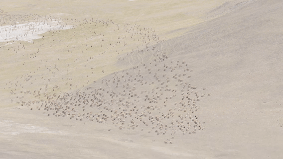 相機無法包容這樣宏大的場面,我們只能看,用力睜大眼睛看,把這一刻烙印在心里。當羊群如同金色的洪流,卷動起飛揚的塵土,我們這些外來者倒顯得有些格格不入,因為它們才是這片土地的主人。