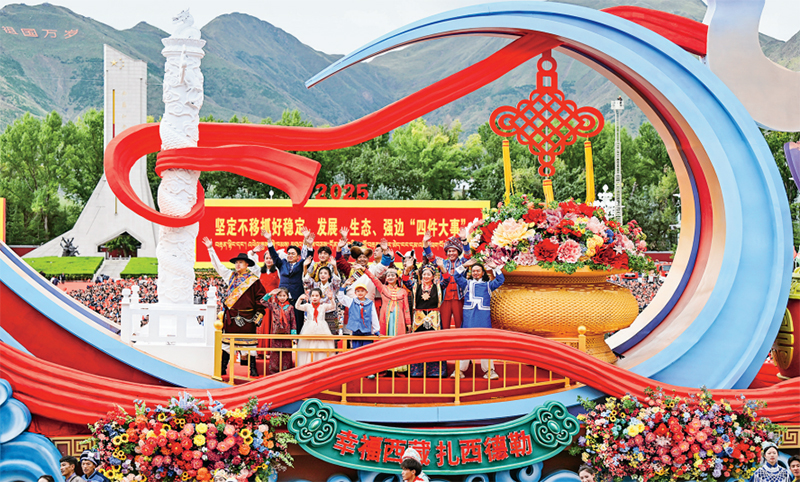 2025年8月21日上午,西藏各族各界干部群眾約2萬(wàn)人歡聚拉薩市布達(dá)拉宮廣場(chǎng),熱烈慶祝西藏自治區(qū)成立60周年。圖為游行的彩車(chē)通過(guò)布達(dá)拉宮廣場(chǎng)。 新華社記者 謝環(huán)馳/攝