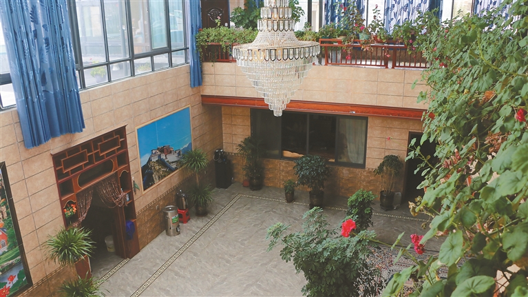 “現(xiàn)在的日子,以前想都不敢想?!眲偨M穿好睡衣從浴室出來(lái),倒上一杯酥油茶,愜意地靠在沙發(fā)上。陽(yáng)光穿過(guò)屋頂?shù)牟A旎ò?,在一樓墻壁投下斑駁的光影。望著二樓的房間,剛組回憶起了半個(gè)多世紀(jì)前。