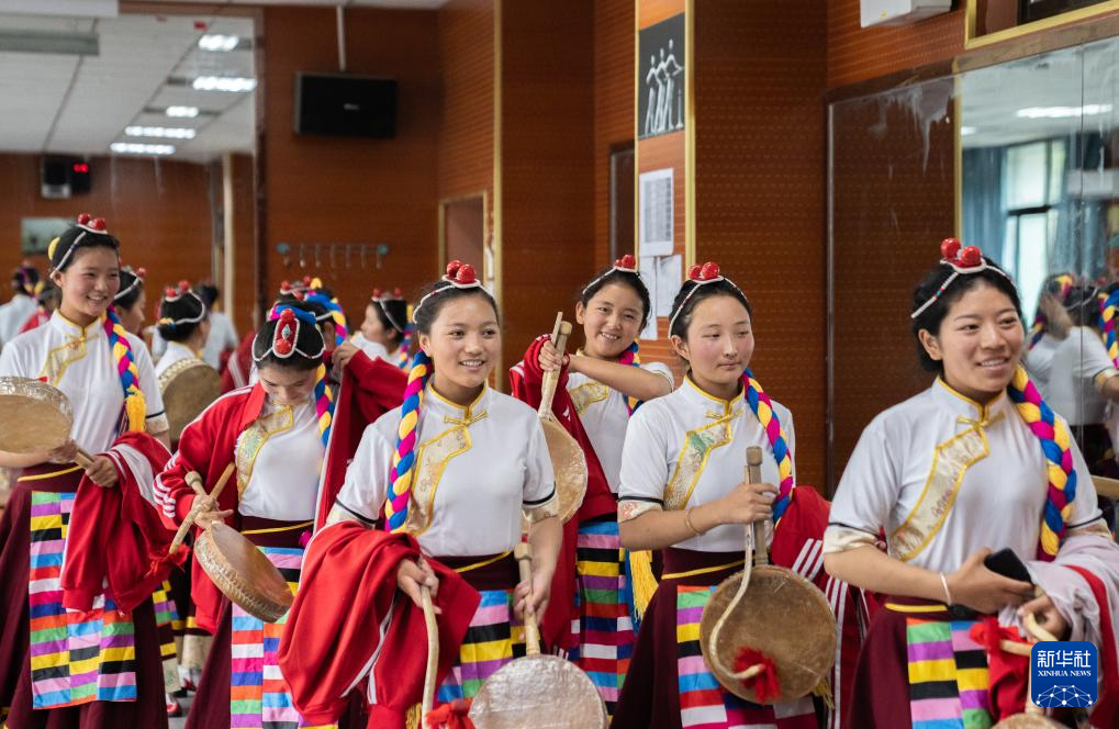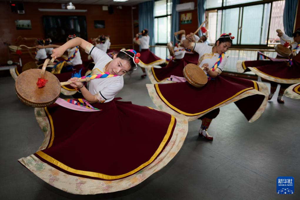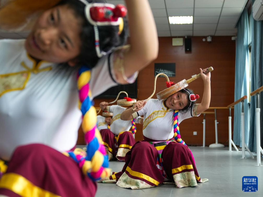 9月9日,在拉薩市第二中等職業(yè)技術(shù)學(xué)校,孩子們在練習(xí)熱巴舞。新華社記者 晉美多吉 攝