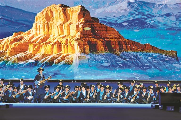 開幕式通過“線上直播+現(xiàn)場觀演”模式,為現(xiàn)場各界來賓、干部群眾及線上觀眾,呈現(xiàn)了一場內(nèi)容豐富、形式多元、內(nèi)涵深刻的視聽盛宴。此次演出時長約80分鐘,投入演職人員300余人次,共呈現(xiàn)13個特色節(jié)目。演出以弘揚優(yōu)秀傳統(tǒng)文化和鑄牢中華民族共同體意識為基調(diào),大膽革新藝術(shù)表達形式,將“音、舞、詩、畫”巧妙融合,并鑲嵌濃郁的阿里地域文化元素,通過多元文化交融的舞臺敘事,生動詮釋中華民族“多元一體、和諧共生”的深刻內(nèi)涵,實現(xiàn)歷史與人文的激情碰撞。