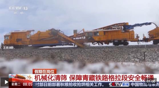 國慶中秋假期是團(tuán)圓時刻,但也有不少人依舊堅守崗位,守護(hù)著千家萬戶的團(tuán)圓。在平均海拔4500米的青藏鐵路格爾木至拉薩段上,西寧工務(wù)機(jī)械段的職工們假日不停工,加緊推進(jìn)機(jī)械化清篩施工,保障假期高原鐵路的安全暢通。