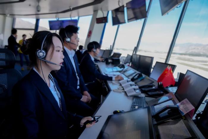 2025年7月18日,管制員在拉薩貢嘎國(guó)際機(jī)場(chǎng)塔臺(tái)工作。中新社記者 張祥毅 攝
