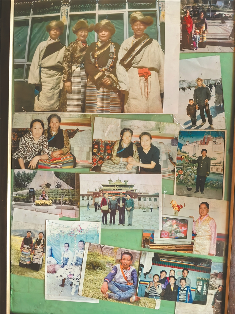 圖為多吉歐珠家客廳里的照片墻。圖片由受訪者提供