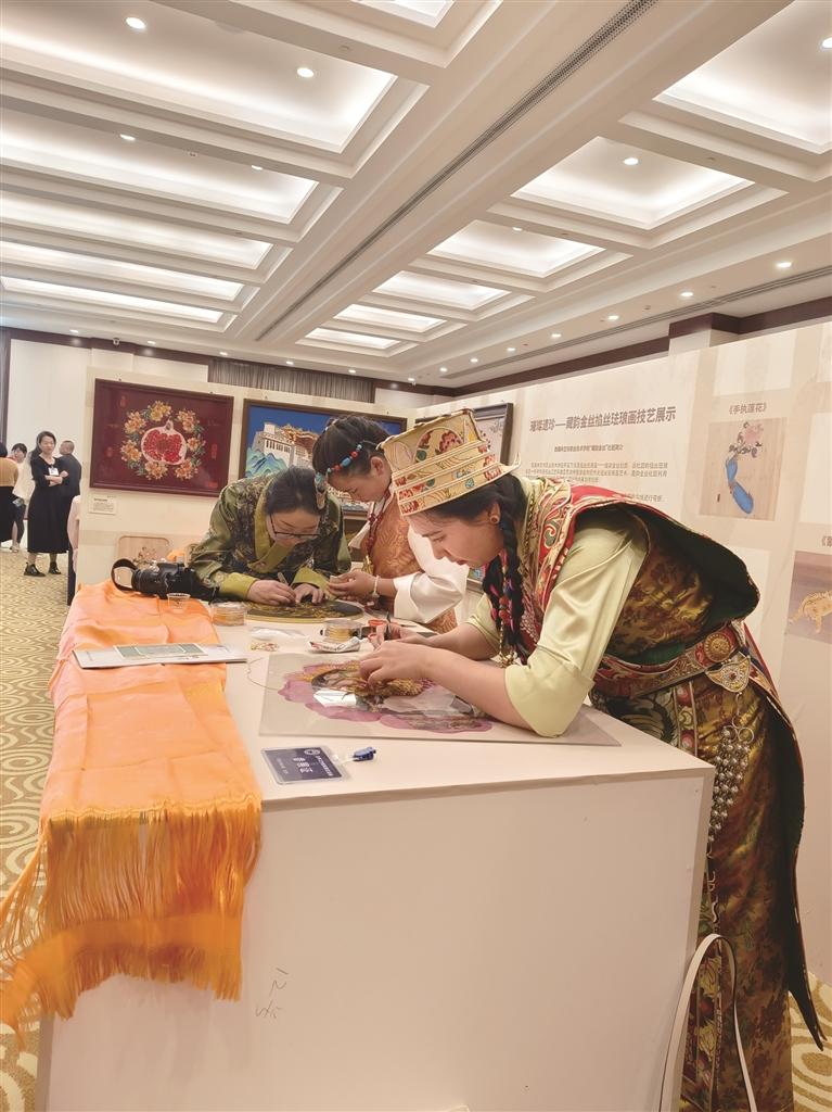 林芝市職業(yè)技術(shù)學(xué)?!安仨嵔鸾z掐絲琺瑯畫”應(yīng)邀參加職業(yè)教育優(yōu)秀非遺教學(xué)成果展。本版圖由林芝市職業(yè)技術(shù)學(xué)校提供