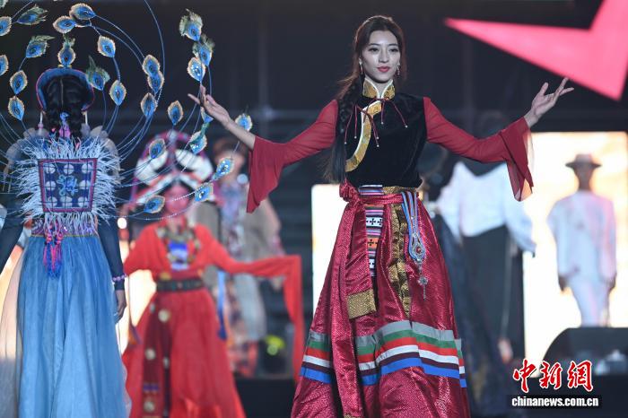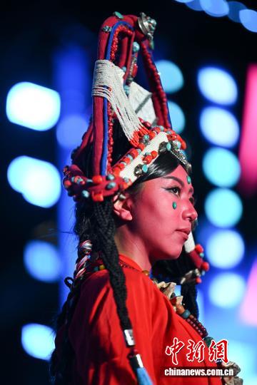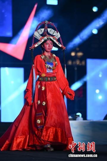 圖為西藏首屆民族舞臺服飾設計大賽決賽現場。中新社記者 貢嘎來松 攝
