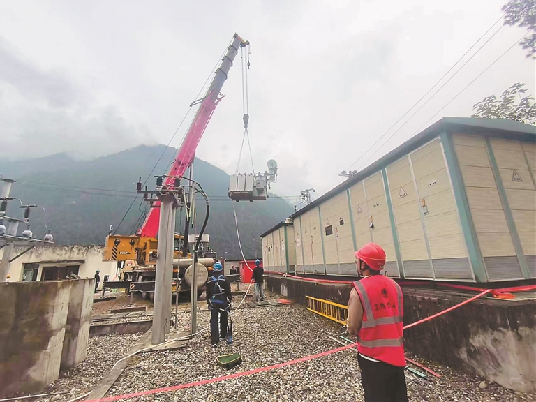圖為國網(wǎng)察隅縣供電公司工作人員正在對變壓器進行改造施工。記者 劉楓 攝
