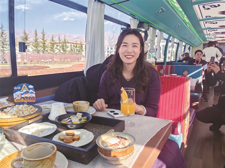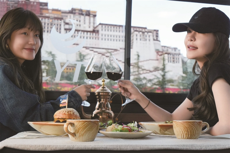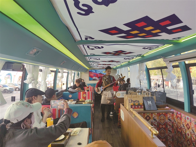 為了讓游客和市民能夠品嘗到最地道的拉薩美食,觀光巴士運(yùn)營(yíng)方與拉薩多家知名餐廳展開(kāi)了深度合作。乘車(chē)期間,游客可以圍爐煮茶,感受那份溫馨與愜意,品嘗果茶的清甜、干果的香脆與甜品的綿密交織在口中的美妙滋味;還可以喝上一杯用高原牦牛奶與醇厚紅茶小火慢熬而成的甜茶,搭配上融合藏式元素的精致茶點(diǎn),仿佛瞬間穿越到了拉薩當(dāng)?shù)厝说纳钪?,沉浸式體驗(yàn)他們的悠閑午后時(shí)光。