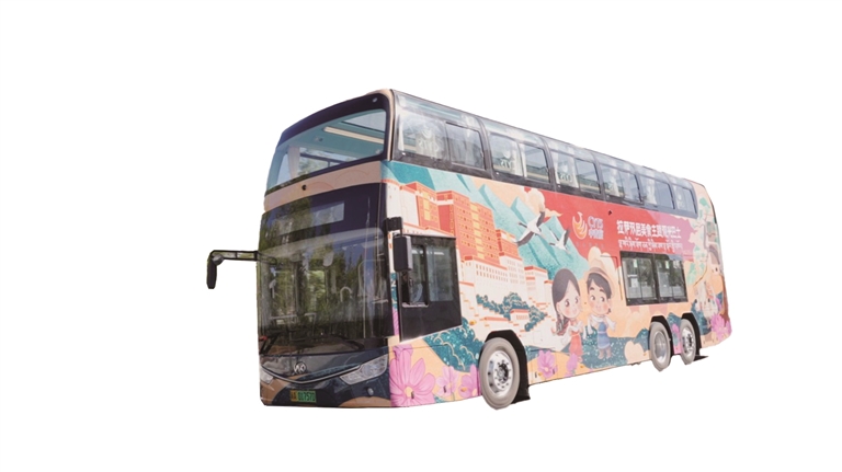 拉薩雙層美食主題觀光巴士車(chē)身以中國(guó)紅為主色調(diào),點(diǎn)綴著黑頸鶴、拉薩兒童笑臉及布達(dá)拉宮等標(biāo)志性景觀圖案,每一處細(xì)節(jié)都散發(fā)著濃郁的地域文化氣息。