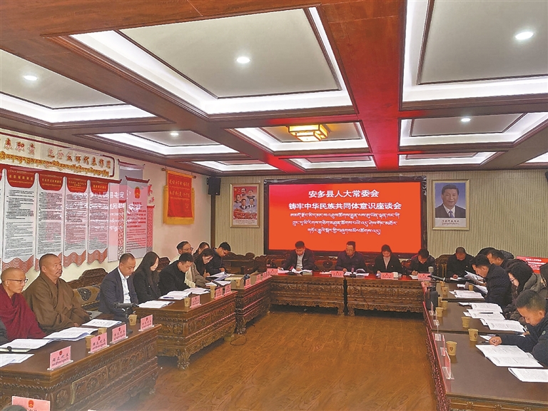 圖為安多縣人大常委會召開鑄牢中華民族共同體意識座談會現(xiàn)場。記者 汪純 攝