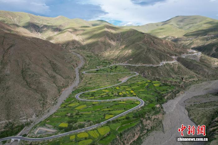 2025年7月15日,航拍西藏自治區(qū)拉薩市曲水縣境內(nèi)的崗巴拉山盤(pán)山公路。(無(wú)人機(jī)畫(huà)面)中新社記者 江飛波 攝