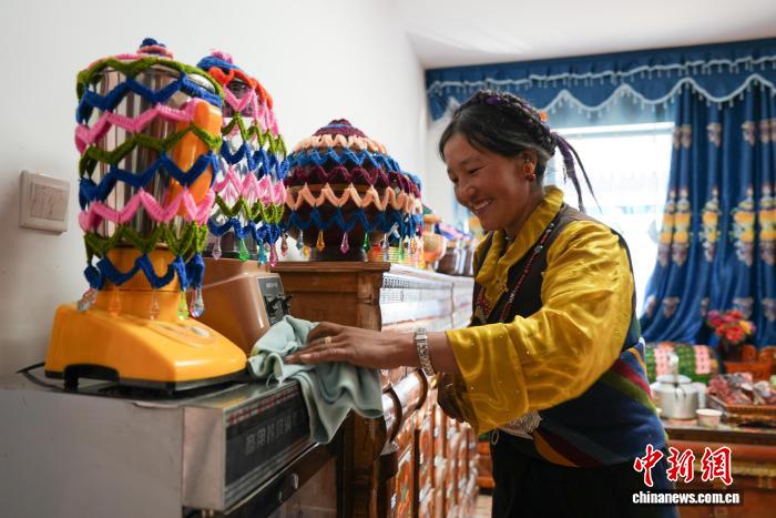 村民多布杰在森嘎村經(jīng)營著一家甜茶館。從安置板房搬進牢固的新居后,生活重回正軌。他在自家院中建起陽光棚開門迎客,每日顧客絡(luò)繹不絕。“新房寬敞,通了自來水,裝了太陽能熱水器,房子都是鋼筋水泥建的,住著不害怕了?!闭劶澳菆鰹碾y,他輕聲說:“只是偶爾想起離開的長輩和發(fā)小,心里還是會難過。”