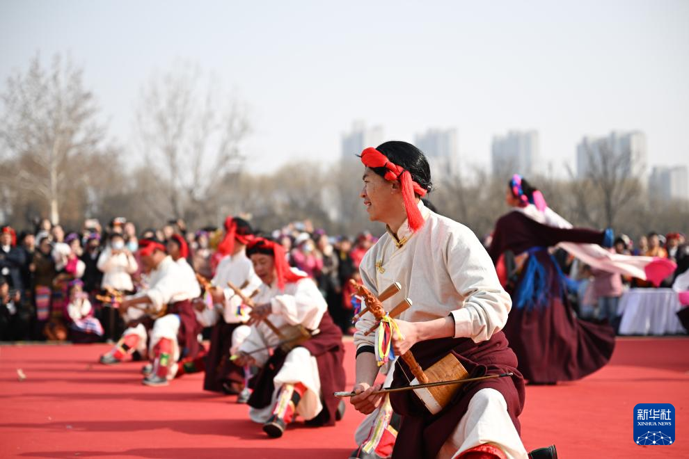 1月17日,一場(chǎng)藏族非遺展演在西安大明宮國(guó)家遺址公園舉行,來(lái)自西藏自治區(qū)昌都市基層文藝團(tuán)體的演員用精彩的節(jié)目展示藏族文化魅力。新華社記者 張博文 攝