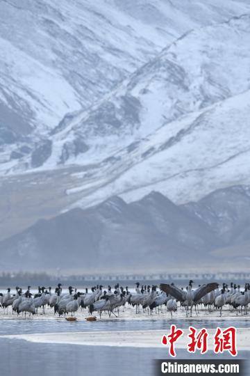 近日,西藏拉薩林周縣黑頸鶴保護(hù)區(qū)迎來一場大雪,黑頸鶴在雪山下的農(nóng)田、水庫里覓食、嬉戲。近年來,隨著生態(tài)保護(hù)力度加大,來拉薩市林周縣越冬的黑頸鶴等候鳥越來越多。被譽(yù)為愛情忠貞之鳥的黑頸鶴,是中國國家一級保護(hù)動物,作為高原生態(tài)變化指示性物種,主要棲息于海拔2500米至5000米的高原草甸、河谷、沼澤間。它有個(gè)可愛的藏文名叫“沖沖”,每年從藏北地區(qū)遷徙到拉薩北部的河谷。