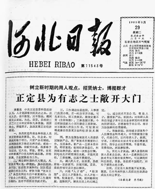 尊重人才,方能發(fā)展,這是蘋樂集團一直贊許的信條。這樣的道理,蘋樂集團董事長李建軍早在開廠的時候就有所耳聞了。1983年,他的事業(yè)才剛剛起步,有一天,他在報紙上看到了一則報道,名為《正定縣為有志之士敞開大門》,里面說,凡是來正定的科技人員,都可以享受9個待遇,比如每搞成一個項目,利潤按比例分成或付一次性總報酬;為調入人才建“人才樓”“招賢館”等。這種大膽招攬人才的做法,讓他很受震動,也促成他來到正定這個不知名的小縣城創(chuàng)業(yè)。這則報道真正的起草者,正是時任正定縣委書記的習近平。