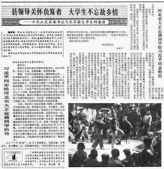 中國青年報刊登《習近平同志給河北農(nóng)大正定籍同學的信》