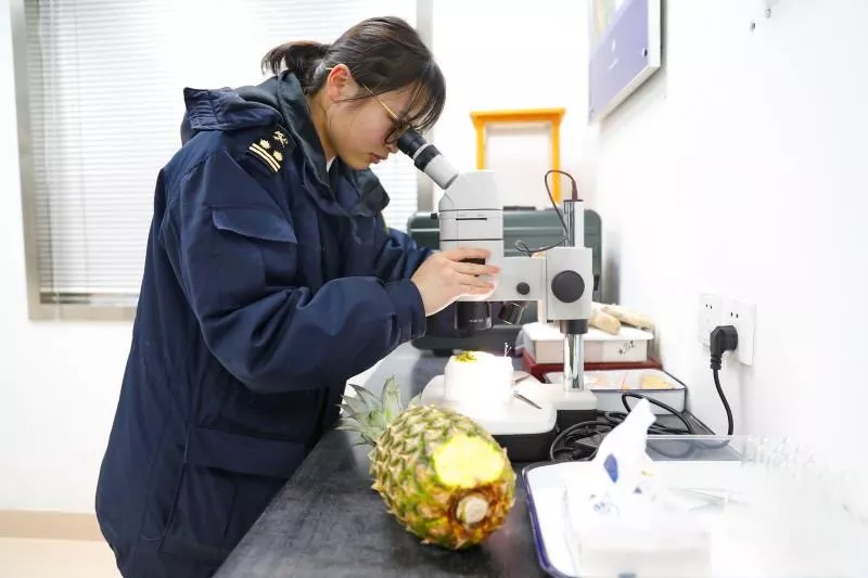現場,海關關員迅速進行核查貨證,品名、數量、許可證、提運單號、智利植檢證書,一一核對相符后按照規(guī)定比例抽查。一箱箱貼著“輸往中華人民共和國”中英文標識的櫻桃被送上檢疫操作臺進行感官檢驗,并對可疑果進行剖果,甄別是否有地中海實蠅等檢疫性有害生物為害;揭下包裝箱標簽,在數據平臺上查詢該批櫻桃的輸華櫻桃果園、包裝廠,確認是否經智利農牧局(SAG)注冊,并經海關總署認可。最后,要迅速抽取代表性的復合樣品,送實驗室實施安全風險監(jiān)控,對農殘和重金屬項目的針對性檢測。天剛蒙蒙亮,所有智利櫻桃全部通過了檢疫,檢驗合格的智利櫻桃被迅速分銷至各大商場、超市以及電商渠道。摁下秒表,從櫻桃從智利起飛到進入中國市場,整個過程只用了不到48個小時。