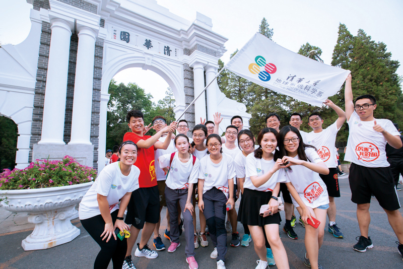 每年的畢業(yè)季,清華大學(xué)都會(huì)舉行畢業(yè)長(zhǎng)跑,即將離開(kāi)母校的學(xué)子們沿著精心設(shè)計(jì)的路線,依次跑過(guò)那些承載著清華記憶的場(chǎng)所,重溫“自強(qiáng)不息 厚德載物”的校訓(xùn),上好離校前的“最后一課”。圖為2018年7月4日,畢業(yè)生們?cè)谥黝}為“擁抱新時(shí)代 青春正起航”的長(zhǎng)跑活動(dòng)中在二校門前合影。 清華大學(xué) 李浩然/攝