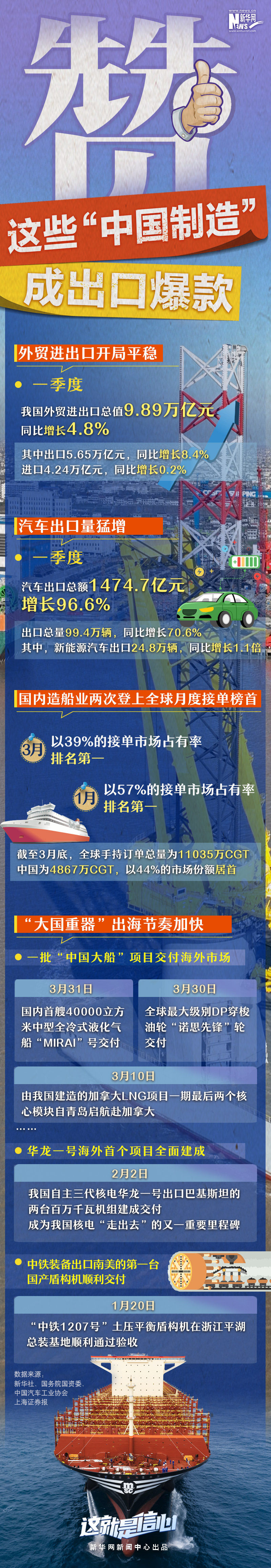 制造業(yè)是實體經濟的重要組成部分。一季度,我國汽車、造船等制造業(yè)細分領域出海步伐加快,成績表現搶眼。